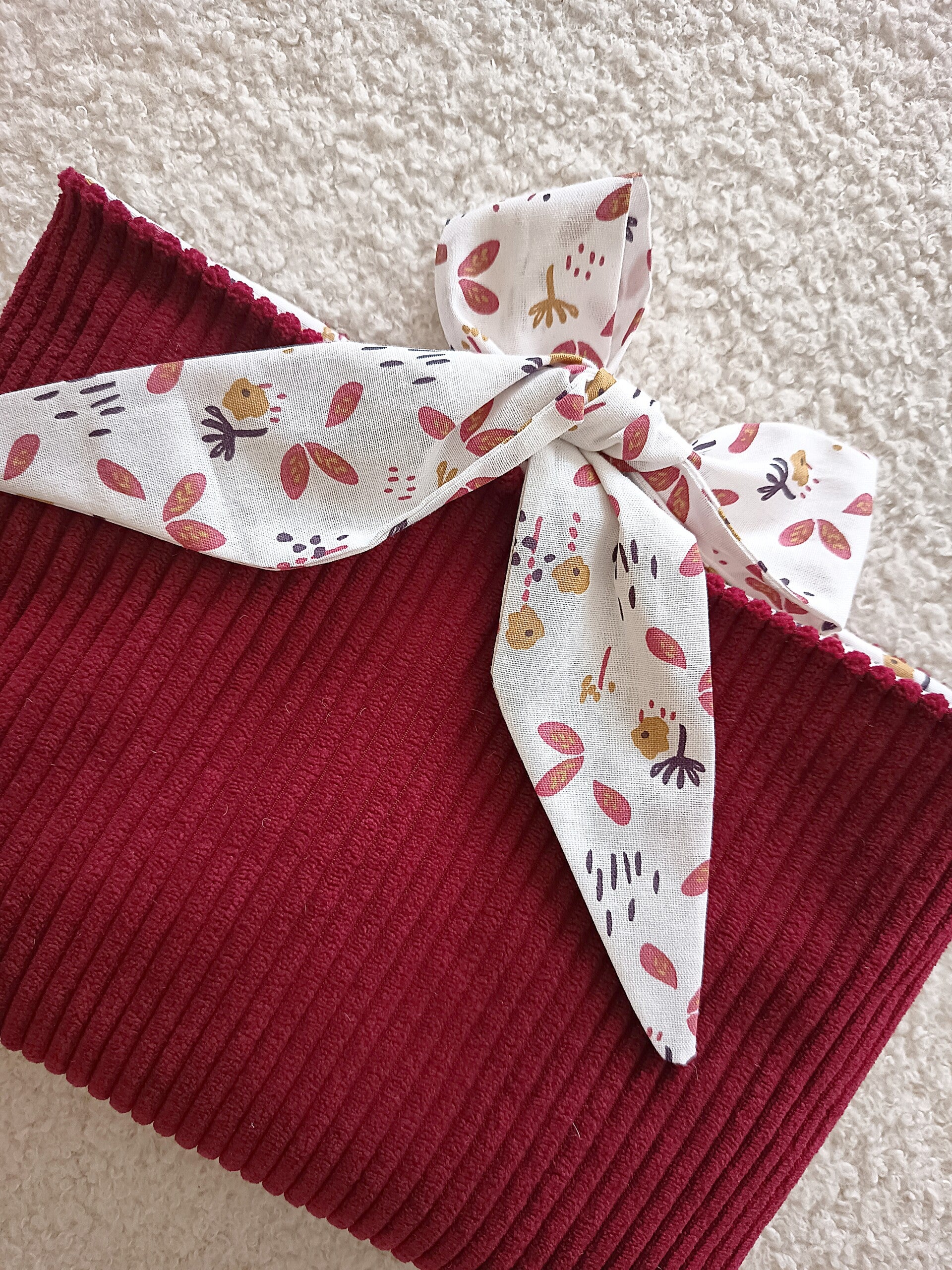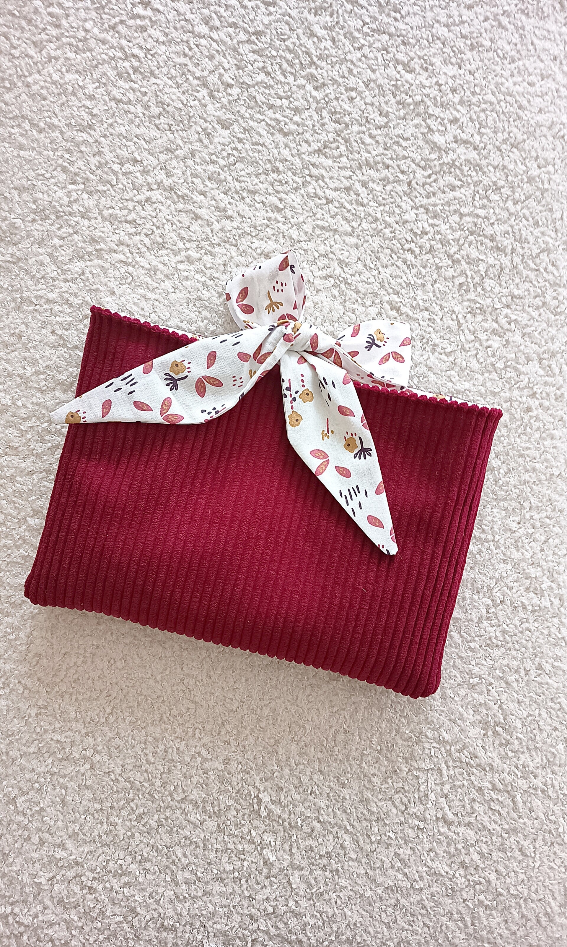 Cette pochette bi-matière associe un velours côtelé raffiné à un coton imprimé à l'intérieur. Elle est doublée de ouatine pour offrir une protection optimale à vos ouvrages.