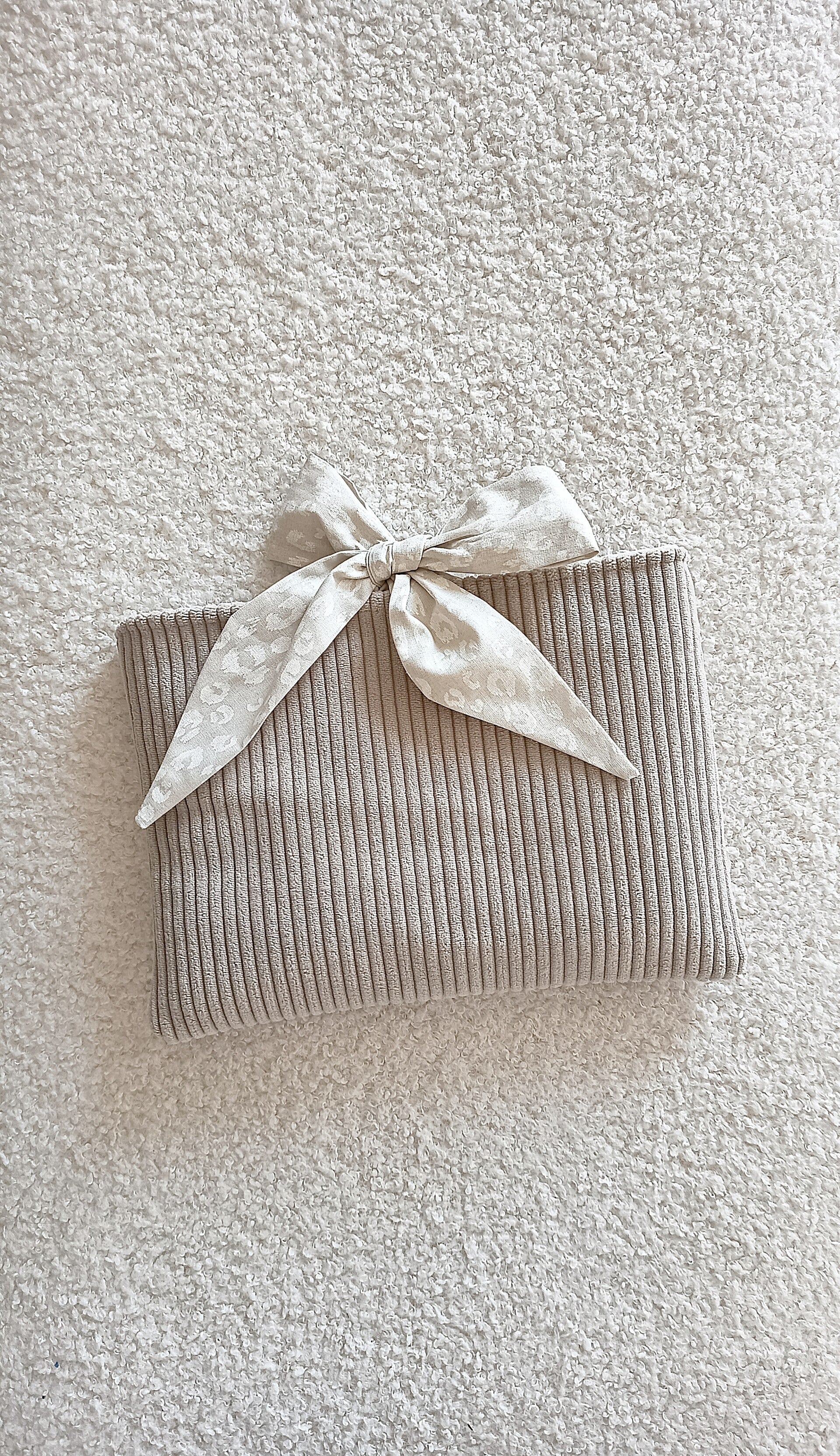 Le petit nœud situé en haut de la pochette apporte une touche d'élégance et de charme.